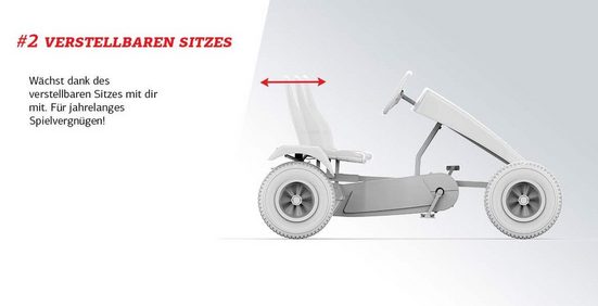 Soll es mühelos über Stock und Stein gehen? Dann haben wir für dich den innovativen E-Pedal-Gokart von BERG. Ganz schnell anfahren oder lieber bequem mit allem Komfort fahren? Auch auf Gras und unbefestigtem Gelände? Das ist jetzt möglich. Je intensiver du trittst, desto mehr Unterstützung bietet der Motor. So sind sogar Geschwindigkeiten von 16 km/h möglich!