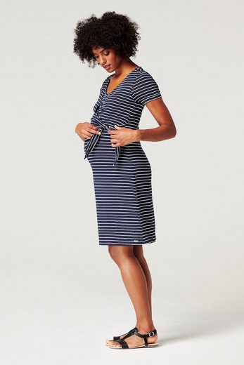 Keep it casual and classy mit diesem gestreiften Kleid aus der Esprit Maternity Kollektion. Das Kleid hat einen Rundhalsausschnitt mit Wickeloptik und Schleifenakzent sowie kurze Ärmel. Dank der doppelten Lage können Sie darin auch stillen. Ihre Brust bleibt während des Stillens subtil bedeckt. Das Kleid ist aus Ecovero, nachhaltig produzierter Viskose, hergestellt.